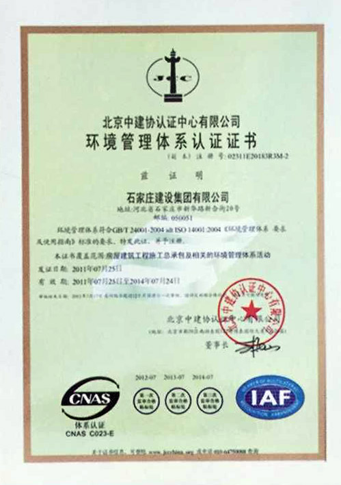 環境管理體系認證證書